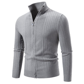 Herren Strickjacke mit modernem Reißverschluss und feiner Rippstruktur Stilzeits