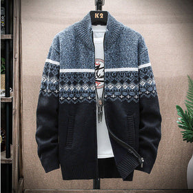 Herren Strickjacke mit nordischem Muster und modischem Reißverschluss Stilzeits