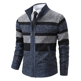 Herren Strickjacke mit Stehkragen und modernem Streifenmuster Stilzeits