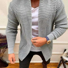 Herren Strickjacke mit tiefem Kragen und strukturiertem Design Stilzeits