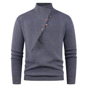 Herren Strickpullover mit asymmetrischem Kragen und dekorativen Holzknöpfen Stilzeits