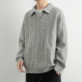 Herren Strickpullover mit Nautical Cable-Muster und klassischem Kragen Stilzeits