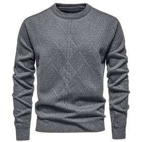 Herren Strickpullover mit strukturiertem Rautenmuster und klassischem Rundhalsausschnitt Stilzeits