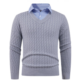 Herren Strickpullover mit Zopfmuster und V-Ausschnitt Stilzeits