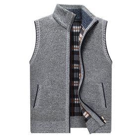 Herren Strickweste mit hohem Kragen und karierter Innenausstattung Stilzeits