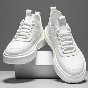Diese weißen Leder-Sneaker vereinen modernes Design mit einer auffälligen chunky Plateau-Sohle. Das glatte, glänzende Leder verleiht ihnen eine edle Optik, während die hellen Schnürsenkel den Look stilvoll abrunden. Perfekt für lässige Outfits oder als modisches Statement – diese Sneakers bieten einen stilvollen Höhenboost mit optimalem Tragekomfort.