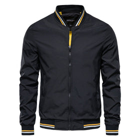 Stilvolle gestreifte Herrenjacke mit Reißverschluss und praktischen Taschen. Perfekt für Frühling und Herbst. Hergestellt aus Polyester und Nylon für hohen Tragekomfort und Langlebigkeit. Erhältlich in verschiedenen Farben. Mit Abzeichen-Detail. Größen XS bis 5XL verfügbar.