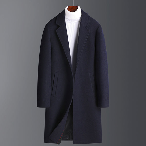 Der Abigail Knee-length Men's Coat verbindet klassischen Stil mit modernem Komfort. Knielang geschnitten und elegant designt, ist er perfekt für formelle und legere Anlässe. Das hochwertige Material wärmt angenehm in kalten Monaten, ohne an Eleganz einzubüßen. Ein Must-have für den stilbewussten Mann.
