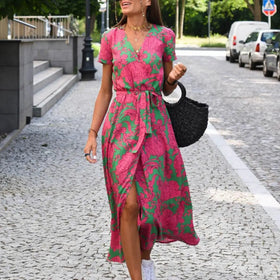 Kurzärmliges Lisa Kleid mit V-Ausschnitt und Taillenpassform