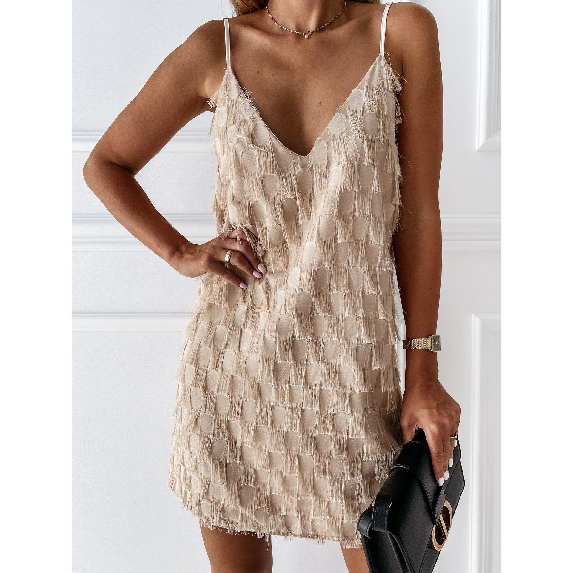 Kurzes Paillettenkleid mit V-Ausschnitt von Fudus