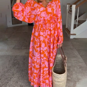 Setzen Sie ein mutiges Statement mit dem Blumenkleid mit langen Ärmeln!