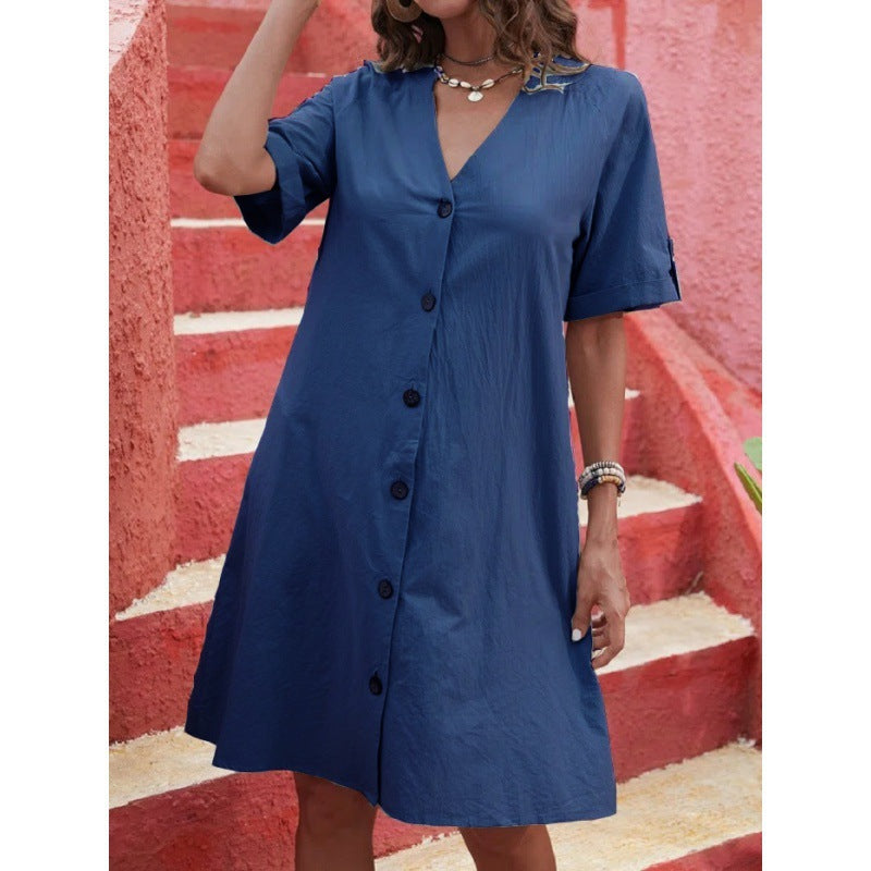 Lockeres V-Ausschnitt A-Linien Kleid von Fudus