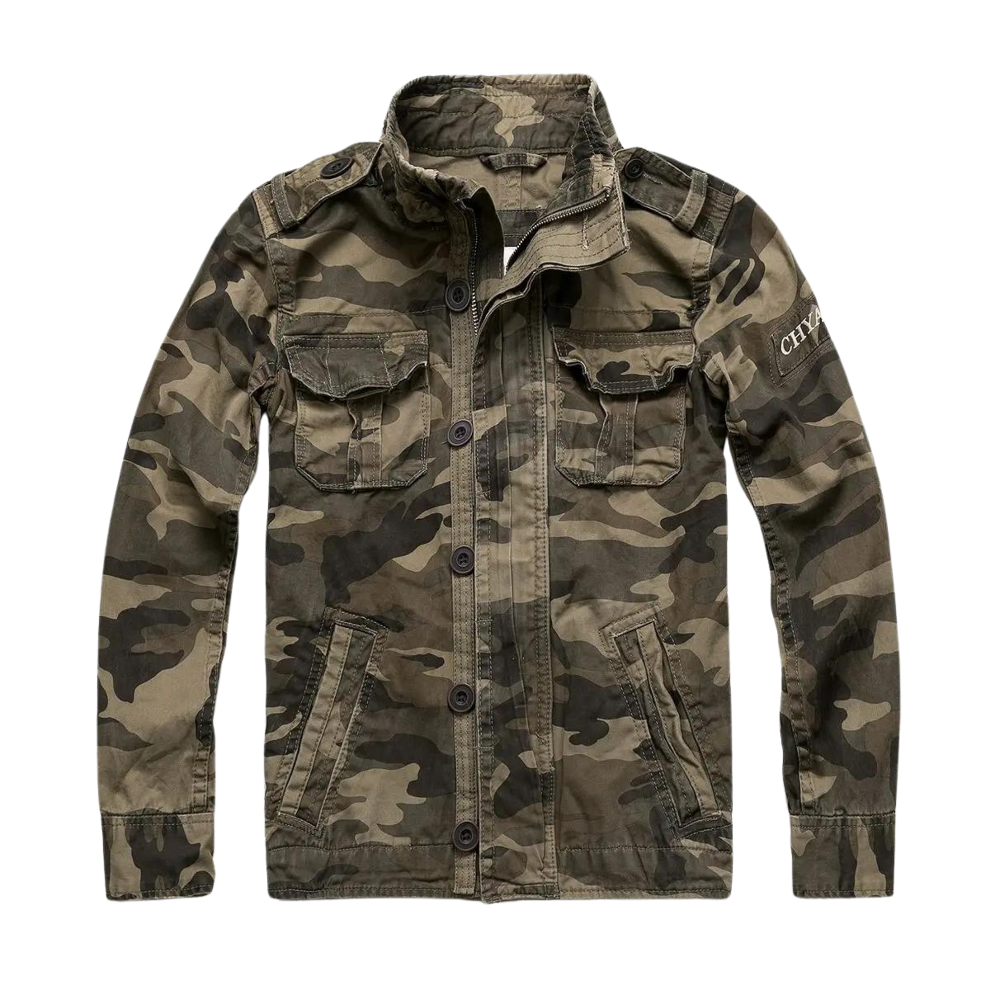 Diese Retro-Denimjacke im Armee-Stil vereint klassische Military-Elemente mit moderner Vielseitigkeit. Mit einem Hemdkragen, einer stabilen Knopfleiste und einem mittigen Reißverschluss bietet sie sowohl Stil als auch Funktionalität. Die praktischen Utility-Taschen und sichtbaren Nähte unterstreichen den robusten Look, während das strapazierfähige Material für langanhaltenden Tragekomfort sorgt.