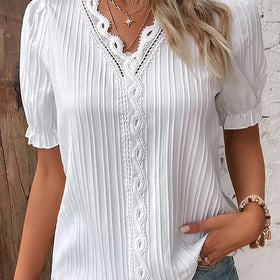 Schicke Sommerbluse mit V-Ausschnitt und Puffärmeln – Anemone