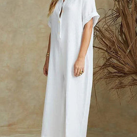 Der elegante lässige Jumpsuit Lavin vereint Eleganz und Komfort. Mit seinem Vintage-Charme, V-Ausschnitt, Kragen und kurzen Ärmeln bietet er eine lockere, entspannte Passform.