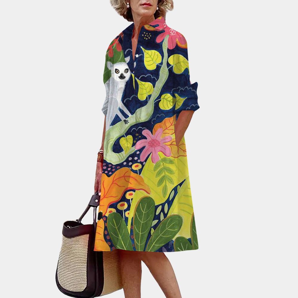 Das Lisette Kleid vereint klassischen Stil und moderne Eleganz. Dieses sorgfältig geschneiderte Hemdkleid ist aus hochwertigem Stoff gefertigt und bietet Komfort und Langlebigkeit.