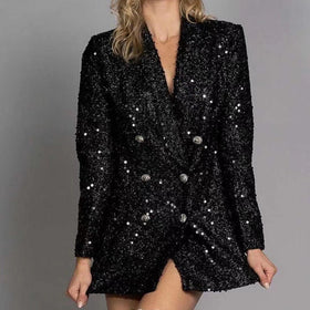 Schickes schwarzes Pailletten-Longtop in Slim Fit von Fudus