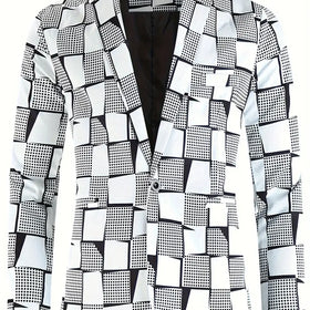 Sommer-Blazer mit geometrischem Schwarz-Weiß-Muster – stilvolle und auffällige Garderoben-Ergänzung. – Hochwertige Materialien vereinen Eleganz und Komfort. – Vielseitig einsetzbar für diverse Anlässe. – Auffälliges Design für entspannte und formelle Events. – Leichter, atmungsaktiver Stoff ideal für warme Monate. – Statement-Piece für Selbstbewusstsein und Stil.