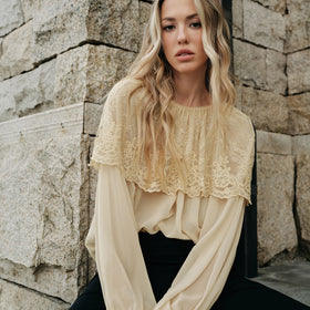Semi-Sheer Lace Chiffon Blouse by Fudus