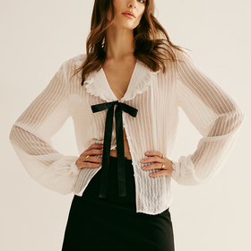 Semitransparentes Hemd mit Rüschenausschnitt und Nadelstreifen von Fudus
