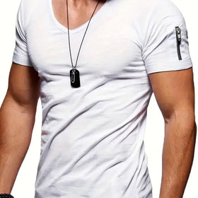 Dieses lässige T-Shirt mit V-Ausschnitt vereint sommerliche Leichtigkeit und stilvolles Design. Das weiche, atmungsaktive Material sorgt für angenehmen Tragekomfort und hält an heißen Tagen frisch. Der moderne Schnitt verleiht Ihrem Look entspannte Eleganz, der V-Ausschnitt eine dezente, maskuline Note. Ideal für Strandtage oder Freizeit – ein vielseitiger Sommerbegleiter.