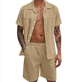 Das Ozi-Sommerset aus atmungsaktiven Stoffen besteht aus Hemd und Shorts, perfekt für Freizeitaktivitäten. Modernes Design und maßgeschneiderte Passform für trendigen Komfort. Ideal für Strand, Treffen im Freien oder Spaziergänge – mühelose Sommermode. Die Größe der Kleidung entspricht der EU-Normgröße.