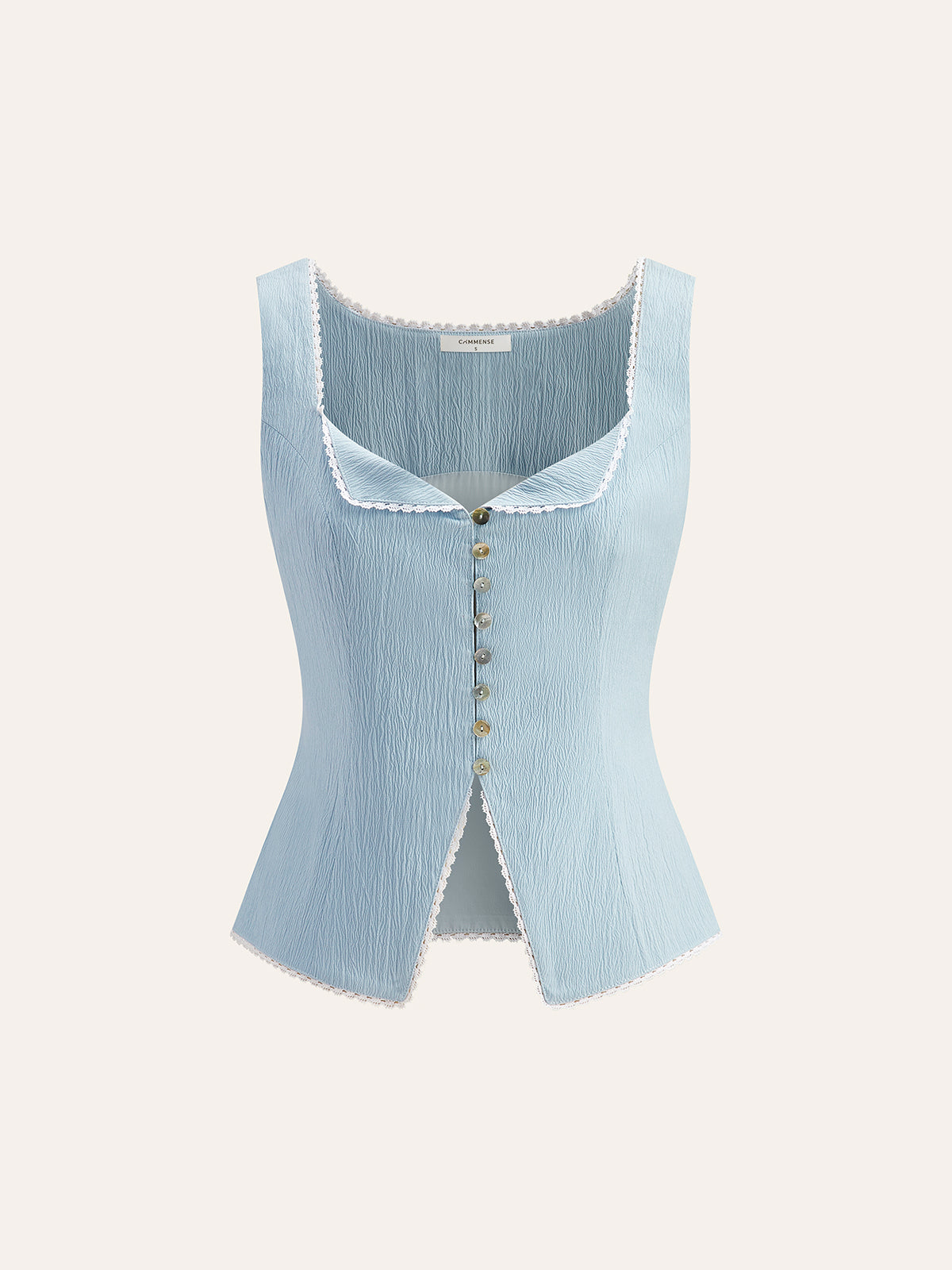 Spitzenbesetztes Top mit Knopfverschluss vorne