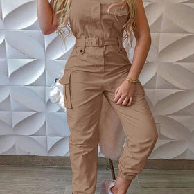 Stilzeits | Damen Jumpsuits Werkzeuggürtel Ärmellos Träger Einfach Rückhaltung Fuß Jumpsuit