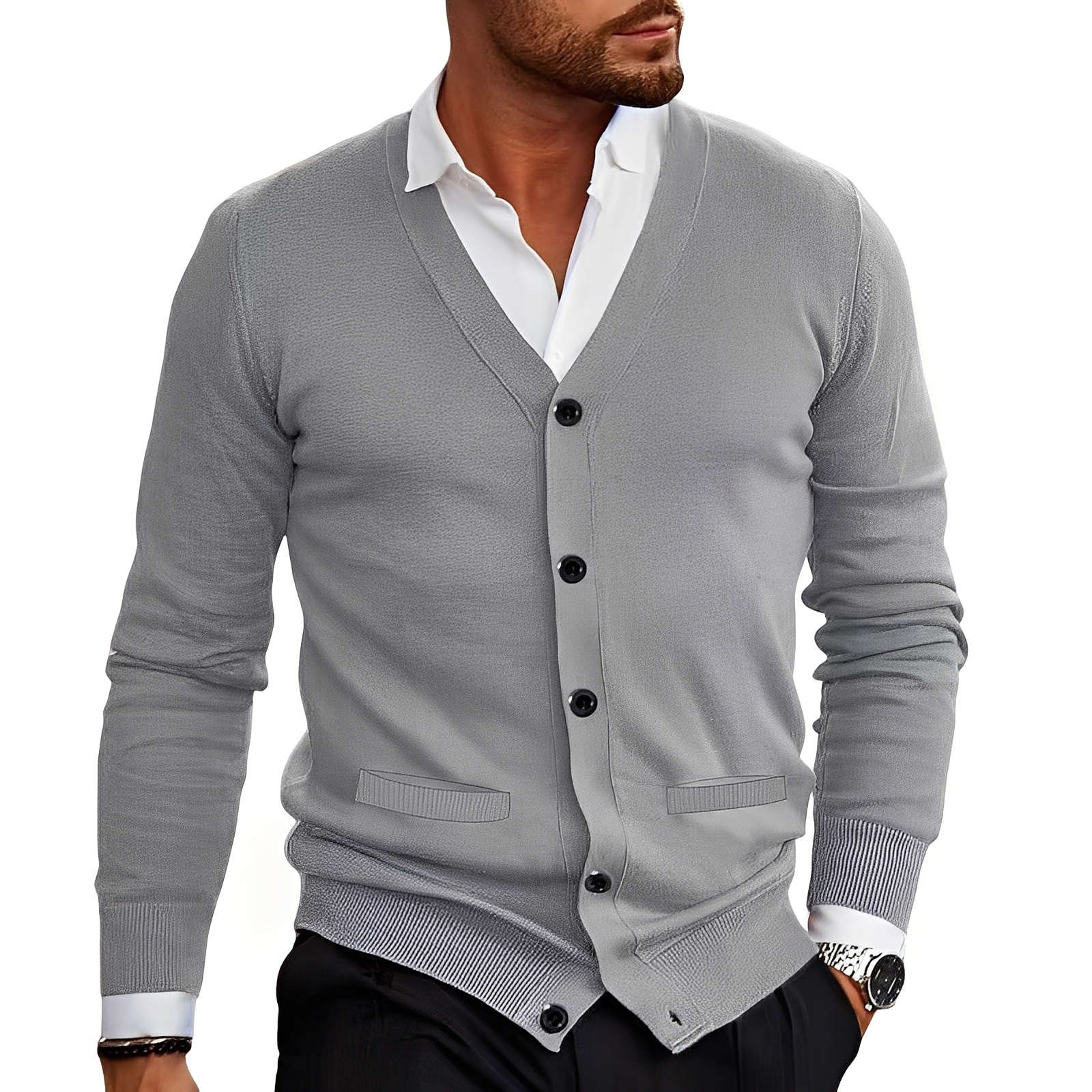 Stilzeits | Eleganter Cardigan mit Knopfblende für Herren