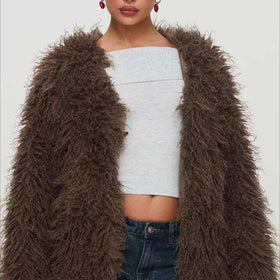 Stilzeits | Fluffy Brown Faux Fur Übergroße Jacke