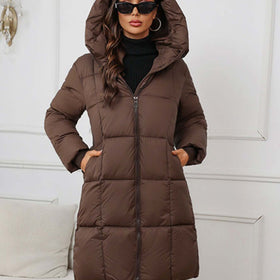 Stilzeits | Frauen Lange Kapuzen-Winter-Pufferjacke