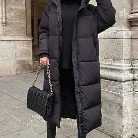 Stilzeits | Lange gesteppte Jacke mit Kapuze für Damen ideal für kalte Wintertage