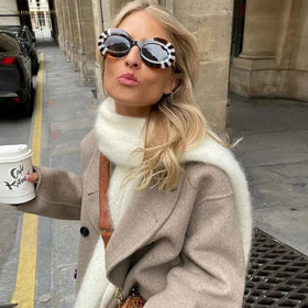 Es handelt sich um eine trendige, oversized Jacke mit einem schlichten Look, die ideal für einen gepflegten und entspannten Auftritt ist. Sie verfügt über eine doppelte Vorderreihe mit großen Knöpfen, die sowohl Wärme spendet als auch einen stilvollen Akzent setzt.