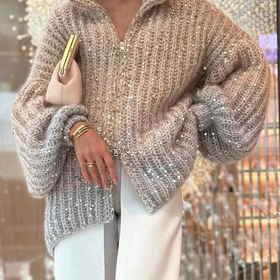 Unser glänzender Seidencardigan ist die ideale Wahl für elegante Frauen im Winter. Das luxuriöse Strickmaterial hüllt Sie in Wärme und verleiht Ihrem Look einen Hauch von Raffinesse. Erhältlich in einer Vielzahl von Farben, bereichert dieser Cardigan Ihre Wintergarderobe stilvoll.