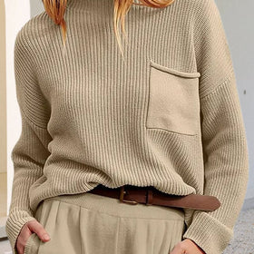Stilzeits | Rippstrickbluse mit Tasche Baumwolle/polyester Komfortabel und Lässig
