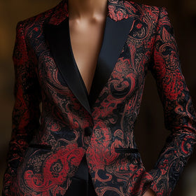 Vereinen Sie Stil und Raffinesse mit diesem wunderschönen Blazer aus Satin mit Paisley-Muster. Der jacquardgewebte Stoff und die elegante, lockere Passform sorgen für ein einzigartiges Aussehen und ultimativen Tragekomfort. Jeder Blazer ist ein exklusives Stück, entworfen für modebewusste Frauen, die Luxus und Individualität lieben.