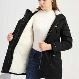 Stilzeits | Schwarze Winterjacke mit Kapuze für Damen Ideal für Herbst Winter