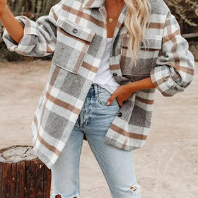Stilzeits Shirt Jacket - Übergröße kariert - Lang mit Brusttaschen und Knopfverschluss: Dieses übergroße karierte Hemdjacket kombiniert Komfort und Stil. Ideal zum Layering, mit langen Ärmeln, Brusttaschen und Knopfverschluss. Eine entspannte und modische Ergänzung für Ihre Garderobe.
