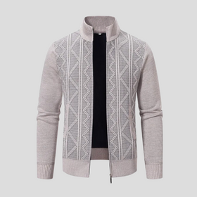 Erleben Sie das unvergleichliche Gefühl von edler Wolle, die Ihnen ein luxuriöses und wohliges Wärmegefühl schenkt. Diese Weste beeindruckt mit einem geometrischen Design und Rippentrimm am Kragen, was eine zeitlose Verbindung von Komfort und Eleganz schafft.