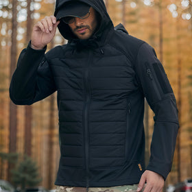 Wir haben die Stilzeits Tactical Isolierte Jacke für Männer entworfen, um den Bedarf an einem vielseitigen Kleidungsstück für alle Jahreszeiten zu erfüllen. Im Hybriddesign ist die synthetische Füllung strategisch platziert, um gezielte Wärmeisolierung zu bieten, während unter den Armen, an den Seiten und um die Taille Softshell-Stoffe eingearbeitet sind. Dies sorgt für Flexibilität, Temperaturanpassung und Bewegungsfreiheit. Der VersaHeat Hybrid Hoody sorgt in kalten Morgenstunden, an hochgelegenen Rastplätzen oder bei nächtlichem Camping für angemessene Wärme, Luftzirkulation und Anpassungsfähigkeit an wechselnde Bedingungen. Es ist das ideale Kleidungsstück, um bei unvorhersehbaren Outdoor-Situationen warm und beweglich zu bleiben.