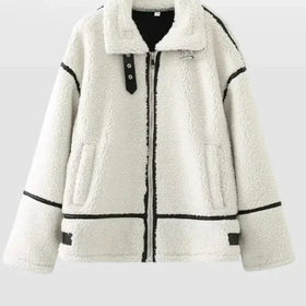 Dank des luxuriösen Teddyfell-Innenfutters hält diese Jacke dich auch bei frostigen Temperaturen wunderbar warm. Die auffälligen Kontrastnähte verleihen dem Gesamtbild eine stylische Note, während die praktischen Reißverschlusstaschen Platz für deine wichtigsten Dinge bieten. Der hohe Kragen und die Schnallen-Details geben zusätzlichen Windschutz und runden das Outfit perfekt ab.