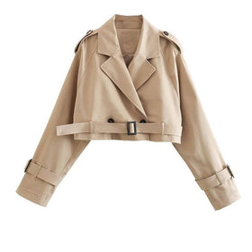 Dieser kurze Trenchcoat ist ein absolutes Must-Have für deinen Kleiderschrank! Diese zweilagige Jacke verfügt über einen attraktiven Kragen und verstellbare Ärmel mit Ärmelschlaufen. Mit diesem Trenchcoat verleihst du jedem Outfit eine elegante, leicht verführerische und gleichzeitig geschäftsmäßige Note.
