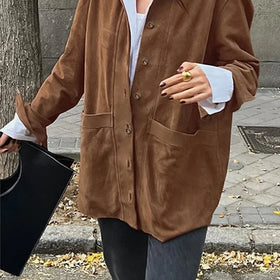 Unser Anna Wollen Damenmantel ist ein stilvoller brauner Mantel mit einem klassischen Reverskragen und einer bequemen Passform. Praktische Taschen und lange Ärmel machen diesen Mantel ideal für die kühleren Monate der Stilzeits. Eine vielseitige Wahl, die Sie mühelos über Ihren Lieblingsoutfits für Herbst und Winter tragen können.