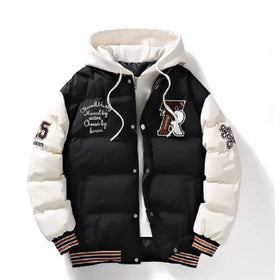 Stilzeits Pufferjack für Herren im Winter | Sportlicher Varsity-Stil mit Kapuze