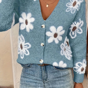Stilzeits | Weiche Strickjacke mit Blumenmuster Acryl Wärme und Stil