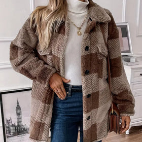 Stilzeits | Weicher Mantel mit Kariertem Muster und Knopfschluss Vorne