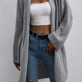 Bist du bereit, die gemütlichen Wintertage zu genießen? Mit diesem wunderbaren Stilzeits Cardigan bleibst du immer angenehm warm. Dieser graue, gestrickte Cardigan kommt in einer langen Ausführung mit überaus langen Ärmeln, die ideal für die kalte Saison sind. Außerdem lässt sich dieser modische Cardigan mühelos mit einem eleganten oder sportlichen Outfit kombinieren.