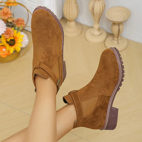 Stilzeits | Winter Schnalle Stiefel Runde Zehe Chunky Absätze
