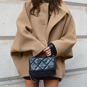 Stilzeits | Wollene Schalkragen Batwing Ärmel Strickjacke Jacke