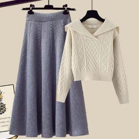 Stilzeits | Zweiteiliges Satz Bestehend Aus Gestricktem Pullover und Halbrock